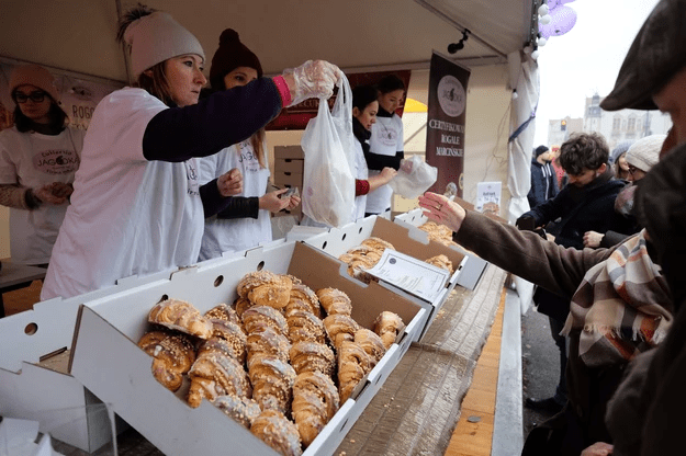 За этой традицией, именно 11 ноября в Познани выпекали эти круассаны и бесплатно раздавали нуждающимся. Однако, местные жители своего не упускали: богатым и самодостаточным людям они продавали рогалики за деньги. Идея праздника заключалась именно в том, чтобы угощать только бедных и бродячих, а состоятельные люди могут себе позволить купить круассан.